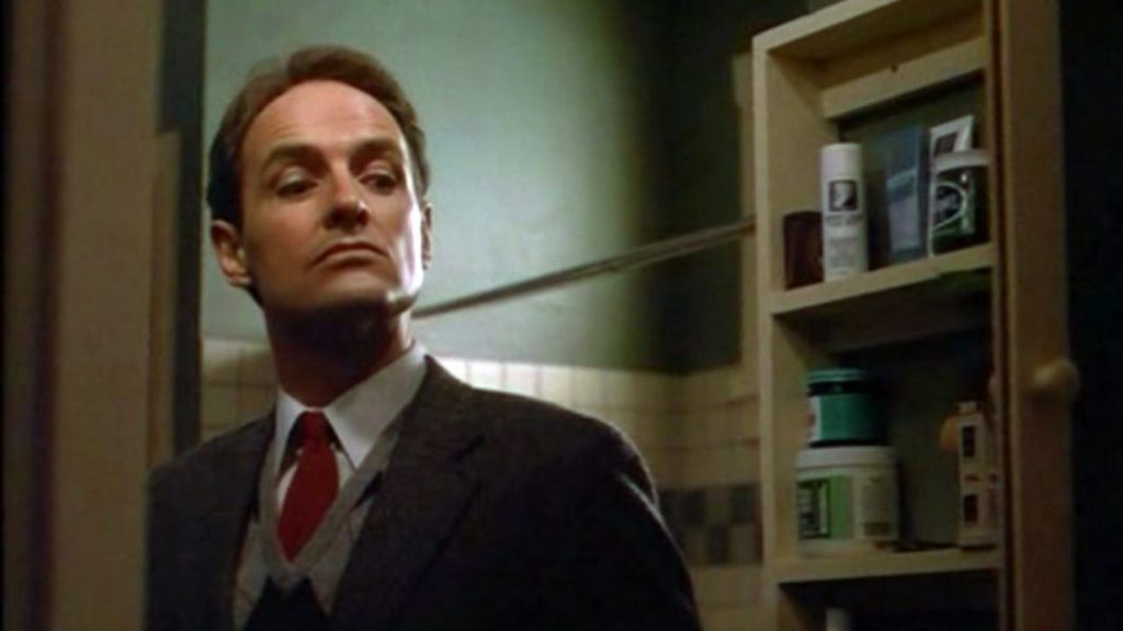And it didn’t. Look at that line-up: Without A Trace, a high-profile film in its day; All the Right Moves, big because of that new star Tom Cruise; Places in the Heart, nominated for multiple Oscars (and it won one) and directed by Robert Benton. O’Quinn remained busy, chewing scenes in a Stephen King directed shit-fest called Silver Bullet, lots of TV, some other straight-to-video nothings. And then, in 1987, he made The Stepfather.