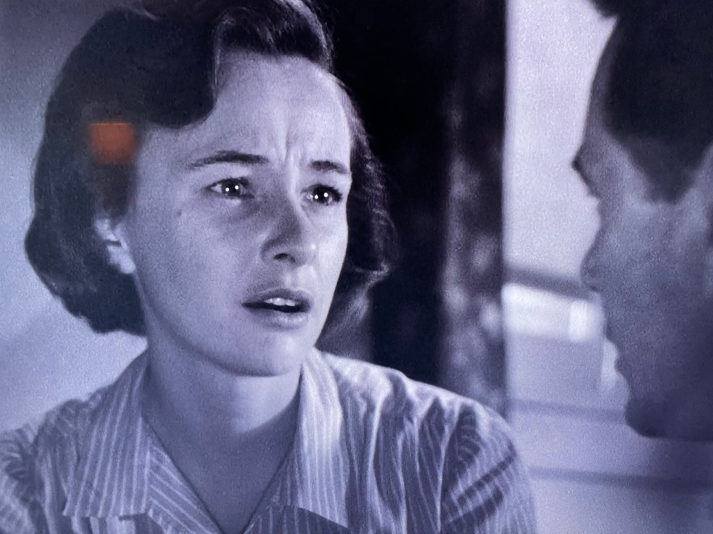 Thaxter doesn’t deliver this speech with tears in her eyes, but with pure steel, enough is enough for her, and she looks like she’s about to throttle him. And for good reason. Harry’s terrible decisions have consequences that are genuinely shocking and profoundly awful, not just to him but to another family close to theirs. In the film, Thaxter is made up to look not made up, and her performance is astounding, calling not only into question Harry’s actions, but the very heart of film noir, this ridiculous pursuit of dreams. Her Lucy pulls back the curtains to show the children and the wife of the men whose foolish decisions upend so many lives in these films. It’s astonishing.
